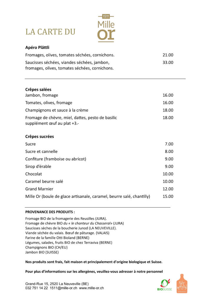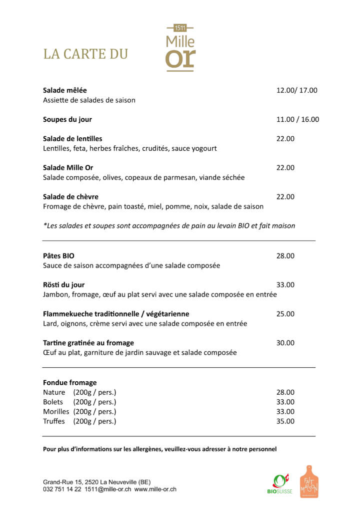 nous proposons un ou plusieurs menus du jour à base de produits locaux, bio et faits maison